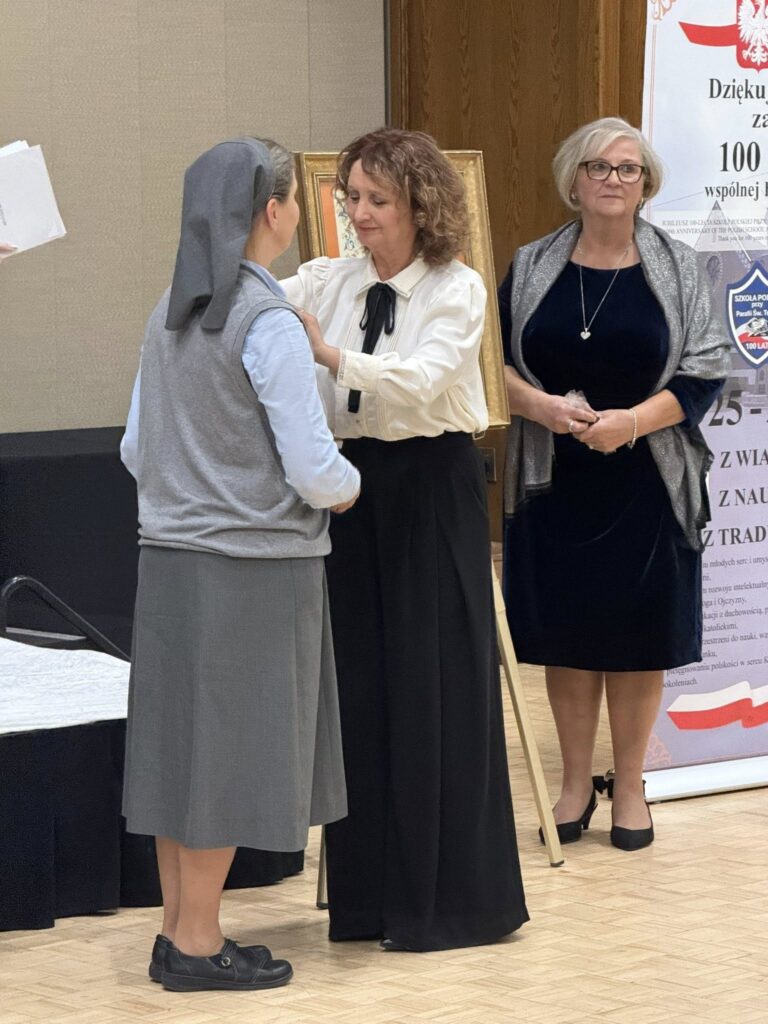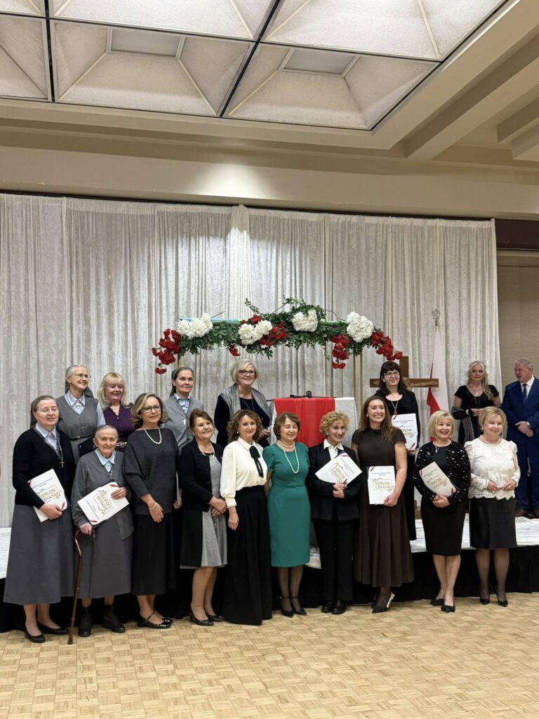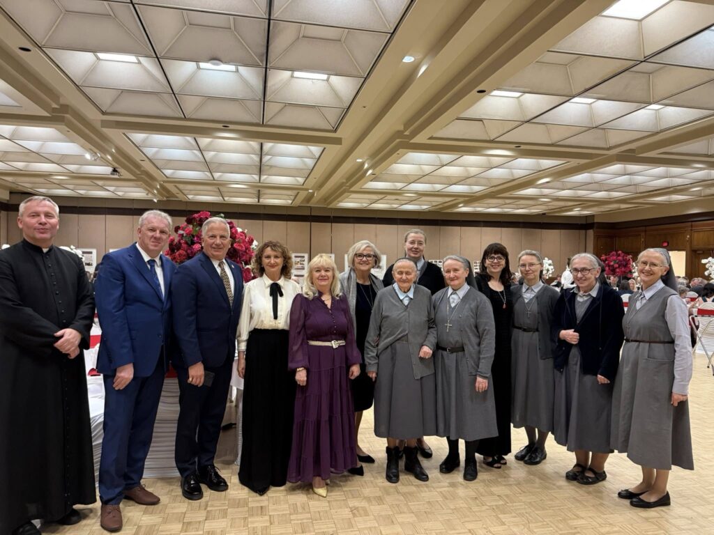 W sobotę, 12 listopada w pięknej Sali bankietowej Giovanni Caboto Club w Windsor odbył się uroczysty Bankiet z okazji 100-lecia Polskiej Szkoły przy Parafii Św. Trójcy oraz 65-lecia przybycia Sióstr Urszulanek do tego miasta. To było niezwykłe Święto niemal całej społeczności polonijnej Windsor, miasta położonego w południowej części Ontario nad rzeką Detroit stanowiącą granicę Kanady z USA i sąsiadującego z amerykańskim miastem Detriot. Ze względu na ogromne zainteresowanie Jubileuszem organizatorzy zmuszeni zostali do przeniesienia uroczystości do większej Sali bankietowej Giovani Caboto Club. Jubileuszowe obchody rozpoczęła Msza Św. w Kościele pod wezwaniem Św. Trójcy w intencji Jubilatek: Stowarzyszenia Polskiego Domu Ludowego, Polskiej Szkoły i Sióstr Urszulanek. Po Mszy Św. goście udali się do wspomnianej już Sali bankietowej Giovani Caboto Club oczekiwani i mile witani przez mistrzów ceremonii: Mariusza Zalewskiego i Dorotę Makarczyk. Na początek, w części artystycznej wystąpiły: Zespół Pieśni i Tańca „Tatry” oraz zespół „Polskie Nadzieje” – Marysia i Michał Zalewscy, absolwenci Szkoły Jubilatki, którzy pięknie zaśpiewali dwie piosenki po angielsku „Hallelujah” i po polsku „Uwierz Polsko” a następnie prowadzący uroczystość powitali serdecznie gości honorowych. Byli to: Justyna Frelak Wicekonsul, Kierownik Referatu do spraw Polonii, Ekonomicznych, Komunikacji i Dyplomacji, Przełożona Generalna Sióstr Urszulanek z Polski – Matka Beata Mazur i Generalna Ekonomka Siostra Iwona Dworska również z Polski, ks. Stanisław Izdebski proboszcz parafii Św. Trójcy i opiekun duchowy Polskiej Szkoły, Kathy Borrelli posłanka MP Windsor-Tecumseh-Lakeshore, Andrew Dawie poseł MPP Windsor-Tecumseh, Angelo Marignani Councillor Ward 7, Jolanta Hałaczkiewicz prezes Kongresu Polonii Amerykańskiej, Oddział Michigan, Irek Kuśmierczyk były poseł do Parlamentu Federalnego Kanady, Krzysztof Krystosiak profesor z Uniwersytetu w Toronto. Zarząd Główny Związku Nauczycielstwa Polskiego w Kanadzie reprezentowały: Iwona Malinowska prezes, Teresa Szramek wiceprezes, Ewa Iwanicka wiceprezes i Dorota Wilk sekretarz finansowa. Ponadto wśród gości honorowych byli obecni: Konsul honorowy RP Jerzy Barycki z małżonką, prezes Fundacji im. Wł. Reymonta w Kanadzie Kazimierz Chrapka, prezes Grupy 20 Związku Polaków w Kanadzie Zbigniew Kruba z małżonką. Goście w swoich okolicznościowych przemówieniach składali obu Jubilatkom serdeczne gratulacje, życząc dalszych lat pięknej działalności dla dobra Polonii w Windsor i Kanady. Przypomnijmy więc – Stowarzyszenie Polskiego Domu Ludowego (SPDL), z siedzibą przy 1275 Langlois Avenue obchodzące 100. rocznicę swojego powstania rozpoczęło swoją działalność 25 stycznia 2025 roku. Przez sto lat organizacja ta stanowiła fundament polskiej społeczności w Windsor, pielęgnując dziedzictwo kulturowe, wspierając jedność i odgrywając znaczącą rolę w historii miasta. Już w 1930 roku zrealizowano wizję tej społeczności, wznosząc Dom Polski / Polish Club Windsor – siedzibę organizacji oraz założonej w tym samym roku Polskiej Szkoły. Od tego czasu Dom Polski stał się symbolem dumy kulturowej i wytrwałości, pielęgnowanym przez kolejne pokolenia. Przez cały ten czas szkoła odgrywała kluczową rolę w zachowaniu języka polskiego i tradycji, edukując kolejne pokolenia oraz wzmacniając więzi z polskimi korzeniami. W 1965 roku zarządzanie i prowadzenie Polskiej Szkoły powierzono Siostrom Urszulankom, które przybyły z Polski i działały przy Kościele Świętej Trójcy w Windsor. To przełomowe wydarzenie zapewniło dalszy rozwój szkoły i jej misji edukacyjnej, podkreślając zaangażowanie w wysoką jakość nauczania i ochronę polskiej kultury. Obecnie funkcję dyrektor Szkoły pełni Siostra Teresa Sroka, która z dumą i ogromnym zaangażowaniem kontynuuje dzieło Siostry Maris Komorskiej, emerytowanej dyrektor szkoły przebywającej obecnie w Polsce. Miłym akcentem było wystąpienie Siostry Maris i przekazane przez Nią życzenia poprzez połączenie internetowe z Polską. Z okazji Jubileuszu 100-lecia Szkoły dwie Siostry: S. Elżbieta Mruczek i S. Anna Sierak zostały odznaczone przez prezes Iwoną Malinowską honorowymi Złotymi Odznakami ZNP. Ponadto zasłużeni nauczyciele otrzymali Dyplomy Uznania, które wręczyła prezes Iwona Malinowska w towarzystwie członkiń ZG ZNPwK. Byli to: S. Pawła Ryniec, S. Maria Lange, S. Elżbieta Mruczek, S. Anna Sierak, S. Teresa Sroka, Maryla Sawicka, Piotr Sawicki, Hanna Minkiewicz, Krystyna Fila, Janina Zielinska, Lidia Kowal, Wiesława Bochus, Monika Nowak, Jolanta Wichłacz, Marta Klimska, Kamil Welawski, Renata Gallo i Jadwiga Żłobicka. W imieniu odznaczonych głos zabrała Siostra Teresa Sroka, która w serdecznych słowach podziękowała za otrzymane Odznaki i Dyplomy. Gratulacje złożyła Jubilatkom również w imieniu członków Związku Polaków w Kanadzie, prezes Teresa Szramek dołączając dotację na cele Szkoły. Składając gratulacje Szkole Jubilatce prezes Fundacji im. Wł. Reymonta wręczył też stypendium Fundacji Marysi Zalewskiej, obecnie studentce drugiego roku Uniwersytetu w Windsor. Marysia studiuje dwa kierunki: Political Science and Comunication oraz Media and Film. Bardzo miłym akcentem przed rozpoczęciem zabawy tanecznej było wręczenie gościom i sponsorom jubileuszowego Bankietu przez organizatorów upominku w postaci specjalnie przygotowanych butelek wina z okolicznościowymi, pamiątkowymi naklejkami. Jubileuszowy Bankiet przeszedł już do historii. W imieniu swoim i moich Koleżanek z Zarządu Głównego ZNP składam całemu Komitetowi Organizacyjnemu z jego przewodniczącym Mariuszem Zalewskim na czele serdeczne podziękowanie za zaproszenie nas na te Jubileuszowe uroczystości. Niezwykła serdeczność, życzliwość i sympatia okazywane