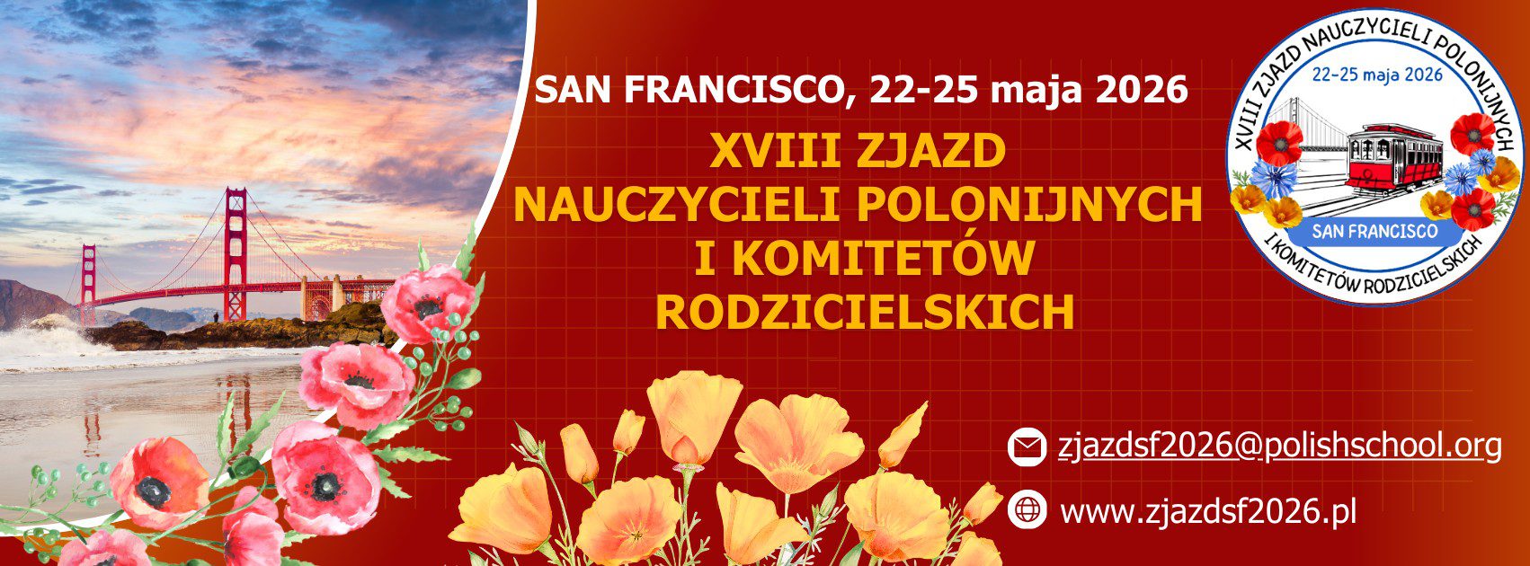 Z ogromną radością zapraszamy Państwa na XVIII Zjazd Nauczycieli Polonijnych i Komitetów Rodzicielskich, który odbędzie się w San Francisco w dniach 22–25 maja 2026 r.